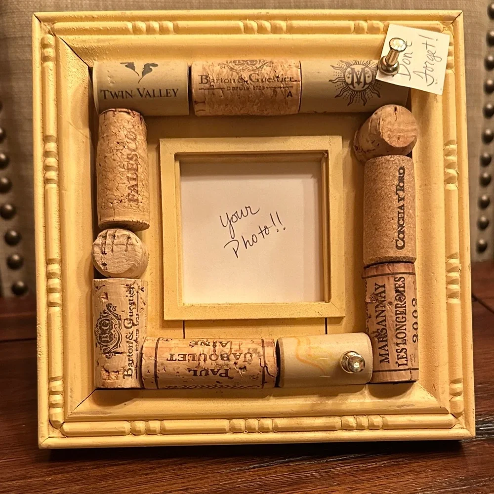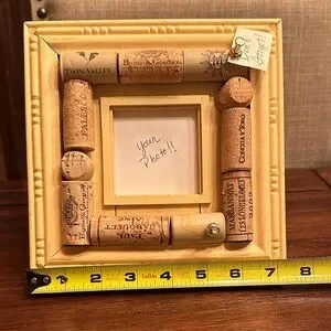 Display your cherished memories with this rustic cork photo frame. The warm tan color adds a cozy touch to any room.