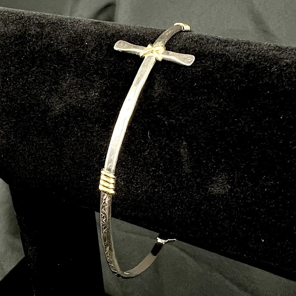 Silver and gold rustic cross bangle. Great for layering, feel free to make an offer! 💓🫶🏼