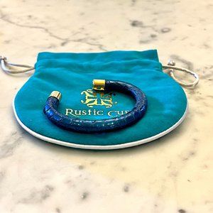 One Metallic Blue Leather Adjustable Cuff Bracelet with Gold Hardware (Bag included)