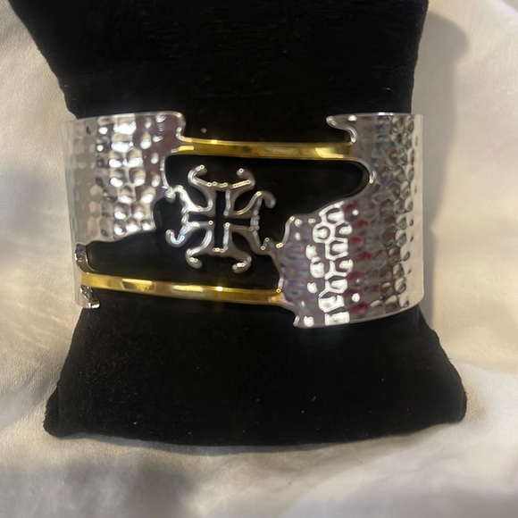 Rustic Cuff 2-tone Silver Gold Logo Bracelet Adjustable