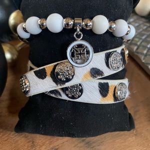 Leopard wrap and beaded bracelet. Comes with box and pillow. New.