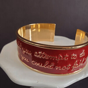 Rustic Cuff Bracelet Red Enamel Gold Tone Encouraging Inspiration Motivational