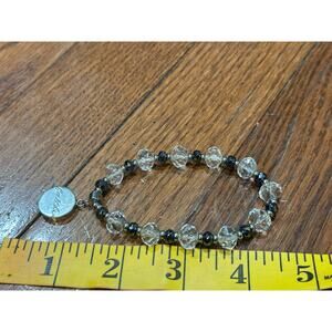 Rustic Cuff Faith Bracelet Silver-Tone Clear Beaded Stretch Logo Charm