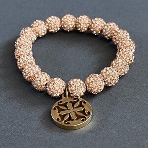 Rustic Cuff Emerson Soft Peach Pave Rhinestone Shambala Logo Bracelet