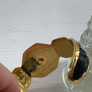 Rustic Cuff Gold Tone Black Snakeskin Leather Python Open Cuff Bracelet