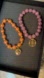Vibrant bracelets with gold and orange beads. Features unique charm accents. Stylish and versatile.