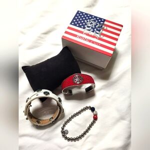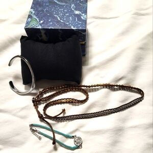 4 sets of Rustic Cuff bracelets, 12 pieces. Used condition, some shows the wear and some are excellent condition. Original boxes. The purple set the bracelet is missing some little stones shown in the picture.Please contact me for questions.