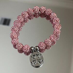 Rustic Cuff Metal Stainless Steel Shambala Beaded Stretch Bracelet pink