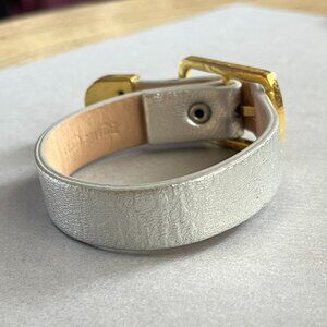 Rustic Cuff Metallic Silver Buckle Logo Bracelet