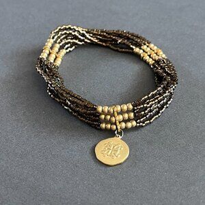 Rustic Cuff Multi Strand Glass Seed Beads and gold stainless Stretch Bracelet