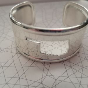 Silver rustic cuff with Oklahoma state cutout.