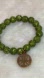 Rustic Cuff | Olive Green Rhinestone Beaded Stretch Bracelets with Gold Charm
