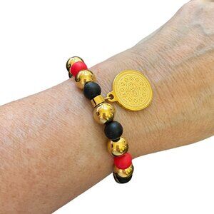 Rustic Cuff "Oreo" Logo Stainless and Beaded Stretch Bracelet EUC
