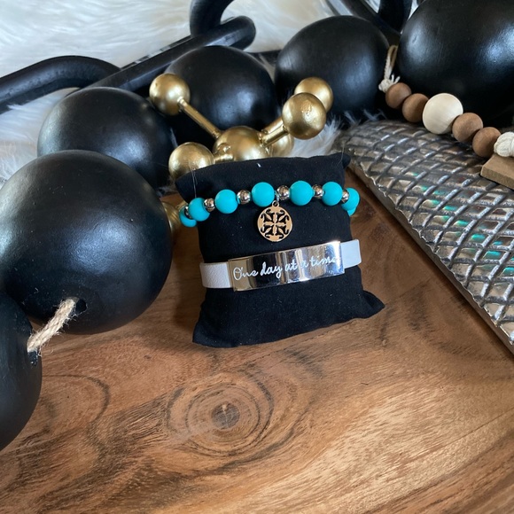 Beautiful wrap “one day at a time” and beaded bracelet. Comes with dust bag.