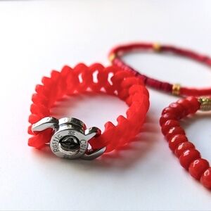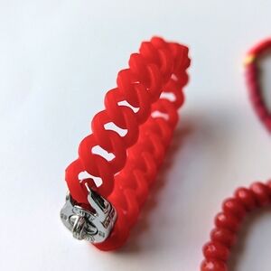 TAGS: Rustic Cuff bracelets, red silicone link bracelet, silicone link bracelet with silver twist lock, polymer clay bracelet with gold accents, coral bead bracelet, bracelet set with logo pendant, red bracelet set, handcrafted bracelets, gold tone accent bracelet, unique bracelets set, stackable bracelets, boho chic bracelet, trendy red bracelets, fashionable bracelets for women, Rustic Cuff jewelry, polymer clay jewelry, boho bracelet set, handmade bracelets with gold accents, colorful bracelet set, beaded bracelets with charm, silver buckle fashion bracelets, coral bead jewelry, custom bracelets with pendant, unique red bracelets, silver lock bracelets, charming bracelets for women, Rustic Cuff jewelry set, trendy bead bracelets