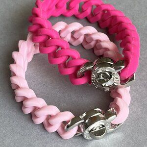 Rustic Cuff Silicone and Stainless Pink Bracelet Set