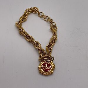 Set of three bracelets featuring gold and silver tones. Includes a gold chain bracelet, a silver and gold beaded bracelet, and a gold beaded bracelet with sparkling accents. Show signs of normal wear as shown in photos.