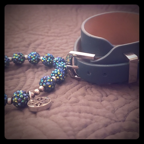 This is a teal and silver stack from Rustic Cuff. First is a kaleidoscope teal Emerson and a teal Giuliana.In great condition, from a smoke free home. Pouch not included but will be shipped safely!