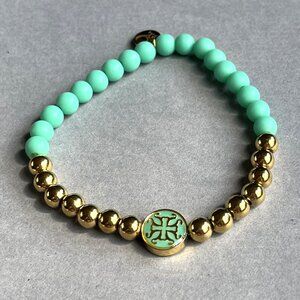 Rustic Cuff Turquoise Silicone and gold Stainless Stretch Bracelet
