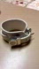 Elegant white leather bracelet with silver accents. Features a stylish clasp and unique design.