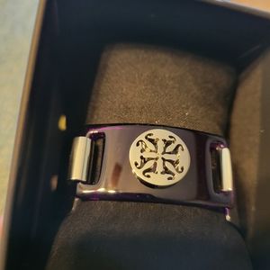purple and silver wide band bracelet. brand new and never worn. rustic cuff bracelets do not come with tags attached