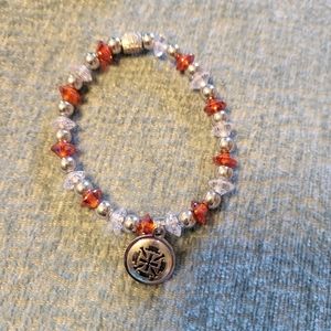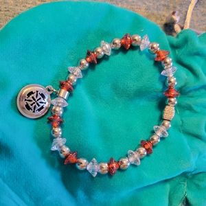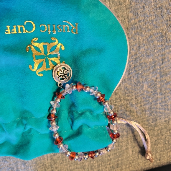 brand new Rustic cuff bracelet with orange, clear and silver beads.