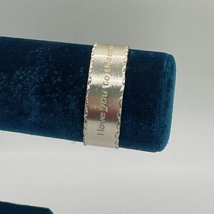 Elegant silver toned cuff bracelet with engraved message “I love you to the moon and back”. Perfect for any occasion.