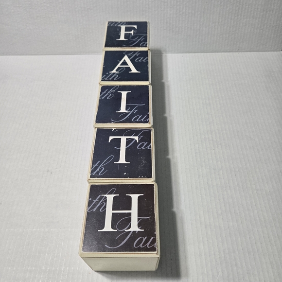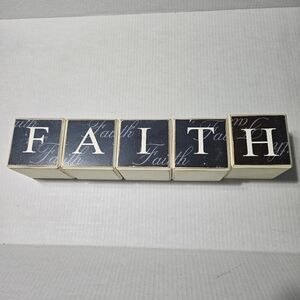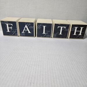 "F-A-I-T-H" blocks spell out the inspiring message of FAITH, graphic text on one side only, all other sides blank, large size blocks approximately 3.5" each