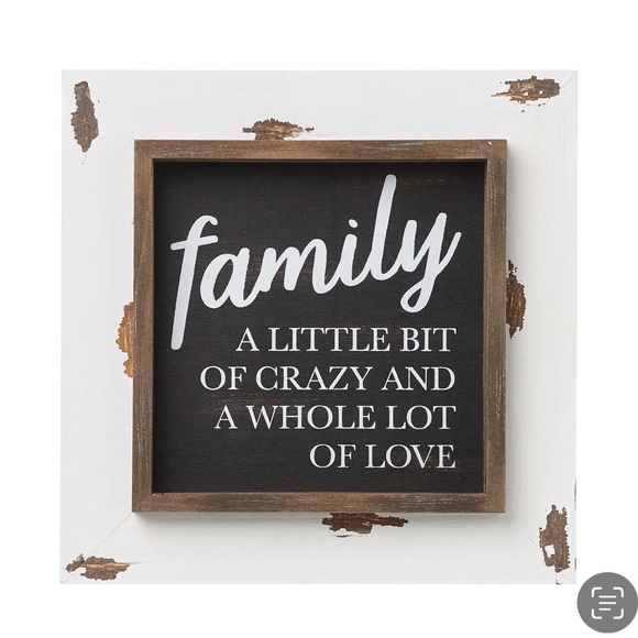 Rustic home decor family sign. Measurements: 7" W× 7" T × 1" D Great to set on a shelf in a family/living space.