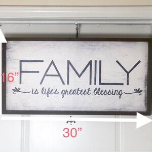 Enhance your home with this elegant wall sign featuring the heartfelt message 'Family is life's greatest blessing.' The white background and black lettering create a classic look that complements any decor.