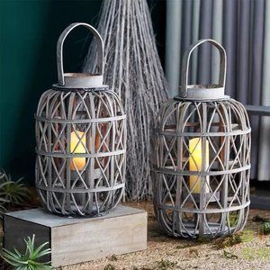 @sarahschneid258 Rustic Farmhouse Decor (4-Pack) Large Wooden Lantern Woven Willow