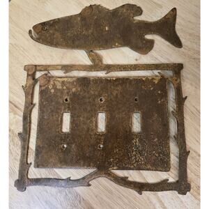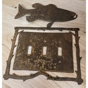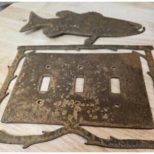 Rustic Fish Triple Switch Plate Cover Copper Patina Torch Cut EUC Cabin Woods