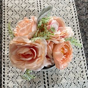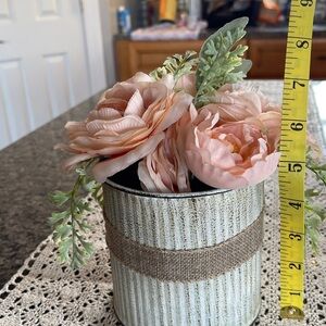 Enhance your home decor with this charming rustic floral arrangement. Featuring beautiful peach roses and lush greenery, this piece adds a touch of elegance to any space. Perfect for creating a warm and inviting atmosphere.
