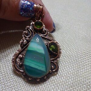 Rustic GREEN BOTSWANA AGATE & PERIDOT Handmade Copper Pendant on a 18" Chain #897B