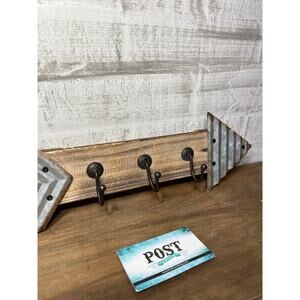 Made from solid wood with galvanized detailing, rustic decor, it has three hooks, great for entryway, leashes, hats, keys etc. it is 15” long, 4” wide