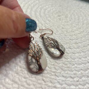 Rustic HOWLITE COPPER WIRE-WRAPPED TREE Handmade Dangle Earrings #620D
