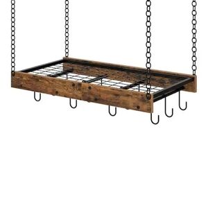 Enhance your kitchen with this vintage/rustic/farm style hanging pot rack. Perfect for organizing your cookware with style.