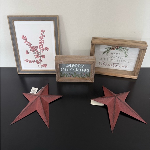 Enhance your holiday decor with this charming set of rustic Christmas signs. Perfect for adding a festive touch to any room.