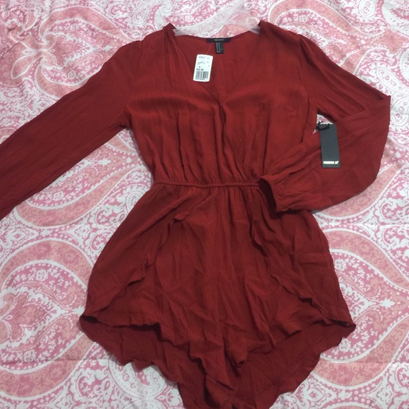 Red Wine colored jumpsuit very cute ruffled at the bottom. Elastic waistline comfy and cute for a night out