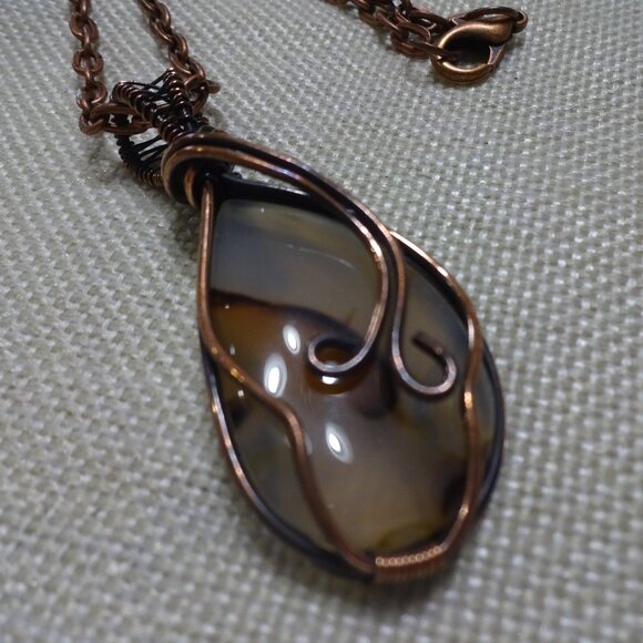 Rustic MONTANA AGATE Handmade COPPER WIRE-WRAPPED Pendant on a 18" Chain (2 1/4" x 1" Pendant) #211c