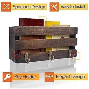 🧿💯QUALITY CONSTRUCTION💯: The key holder for wall decorative is made of high-quality solid wood ensuring durability. The mail holder hangs securely with a sawtooth hanger on the back Overall measurements: 10.5 inches Long by 5 Inches Deep by 3.5 Inches Wide.