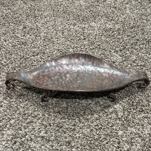 Unique rustic metal tray with handles. Perfect for home decor.