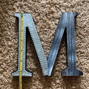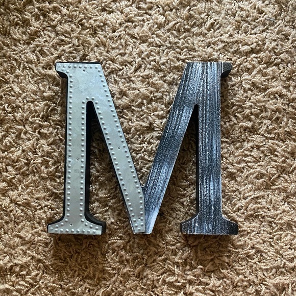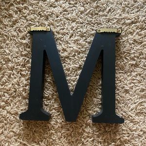 Wood, Black Rustic Letter ‘M’ with Silver Metal Detail! 🖤✨