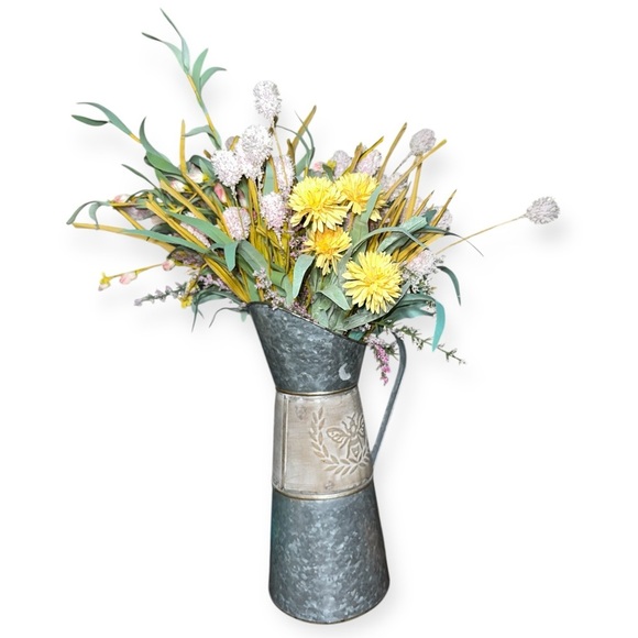 Rustic Metal Vase with beautiful artificial flowers