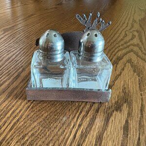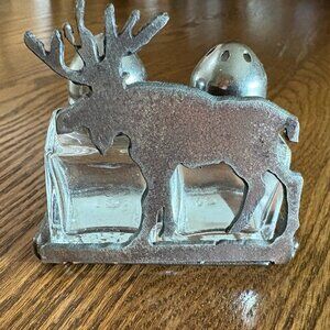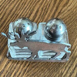 Rustic Moose Metal Salt & Pepper Holder with Mini Salt & Pepper Shakers