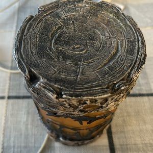 Faux log with mountains and bear rustic nightlight used working condition