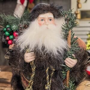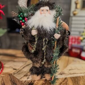 Rustic Old World Woodland Mountain Man Santa Tabletop Christmas Decor , 16”H