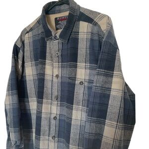 Rustic Outfitters VTG Flannel Mens 2XLT Shirts Blue Plaid Button Down Fleece