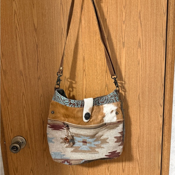 Discover the charm of this rustic patterned shoulder bag, featuring a blend of brown and cream tones. Perfect for adding a touch of elegance to your everyday look.