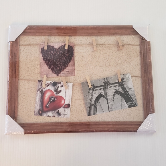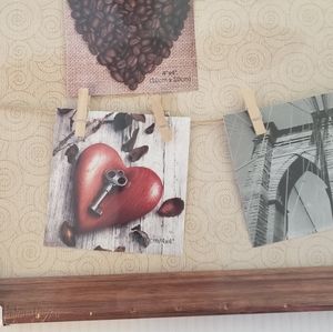 2 tiered rope w/4 clothes pins for displaying your favorites photos.